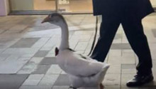 气质杠杠的!成都精致大鹅带蝴蝶结出街