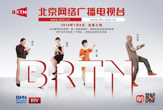 2014年1月8日,北京网络广播电视台BRTN( www.brtn.cn;www.btv.com.cn )全球开播。开播仪式于北京时间上午10:00在北京电视台苏州街台址的新媒体工作基地准时启动,国家新闻出版广电总局、北京市委宣传部领导同志,全国多家网络广播电视台负责人,北京市三网融合协调组相关单位主要领导,新华社北京分社、中国网络电视台、中国联通北京公司、腾讯公司等北京网络广播电视台BRTN( www.brtn.cn;www.btv.com.cn )主要合作单位负责人,以及北京广播电视台领导班子及下属18家单位负责人参加了此次活动。同时,来自世界各国合作媒体记者、新华社全球记者站记者等100多位全球媒体工作者通过与网站同步上线的BTV大媒体客户端,也纷纷发来实时现场报道和祝福。北京电视台腾讯微博微视发布厅同步上线。